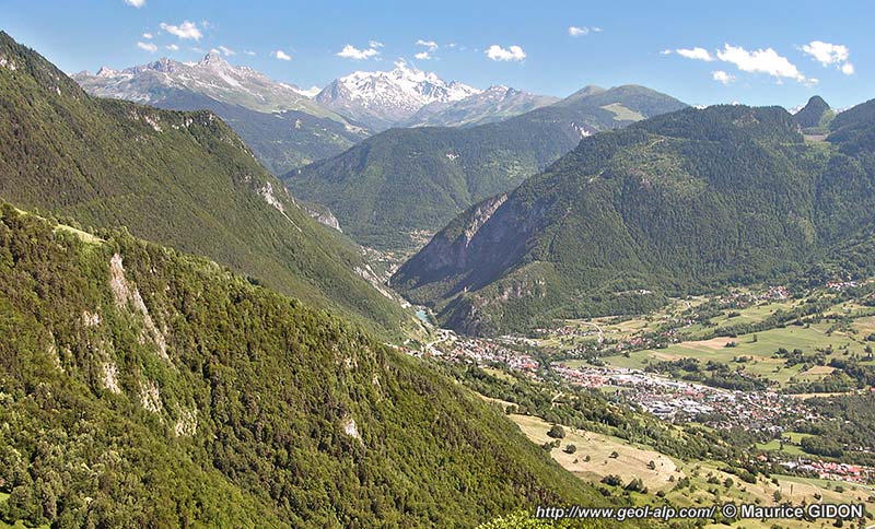 La vallée du Morel s'épanouit dans sa partie aval, pour se raccorder à celle de l'Isère dans laquelle elle débouche. Du côté amont de cette dernière, aux abords d'Aigueblanche, les pentes plus escarpées de son versant oriental recoupent alors les unités "ultra-dauphinoises" qui s'imbriquent là sur le flanc oriental du grand synclinorium dauphinois (voir les pages " Crève Tête" et "Moûtiers").