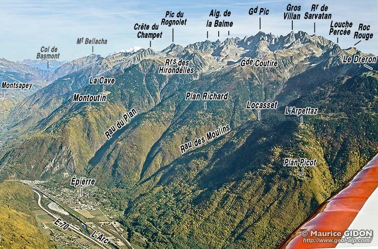 La partie médiane en latitude de la chaîne de la Lauzière est celle qui porte son point culminant, le sommet du Grand Pic (2829 m.). Elle tombe du côté ouest sur la vallée de la Maurienne par des escarpements quasi continus sur près de 2000 m de dénivelée qu'accidentent seulement les entailles de profonds ravins et que recouvrent largement les bois jusqu'à une altitude moyenne de 1900 m. Ce n'est que tout en haut, coiffant ce soubassement d'accès un peu rebutant, que se développe un système de petits cirques séparés par des crêtes rocheuses déchiquetées.