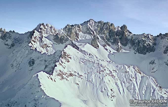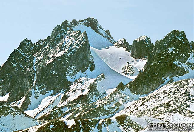 Le Grand Pic de La Lauzière, vu du NE, d'avion le 15 septembre 1978. |