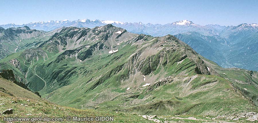 Le versant ouest de cette crête donne une coupe presque complète de la puissante succession des termes du Nummulitique de l'unité ultradauphinoise des Aiguilles d'Arves.
