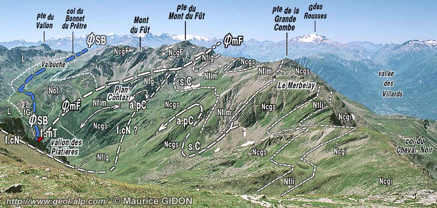 Les affleurements du versant est du Mont du Fût et de Valbuche se situent dans la partie supérieure de la vallée du Nant Brun, qui a fait l'objet d'une plaquette (avec description de 3 itinéraires), réalisée par J.M. Bertrand et A-M. Boullier. |