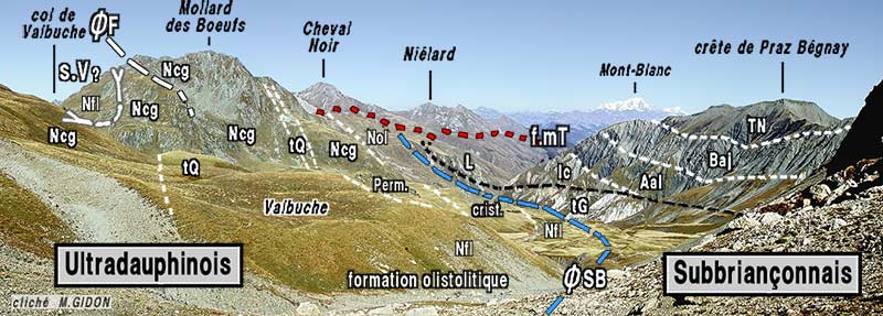Il faut noter qu'une bonne partie du matériel anté-nummulitique de Valbuche affleure de façon chaotique et semble, pour cette raison entre autres, représenter des olistolites emballés dans un olistostrome nummulitique. Plus au nord les conglomérats du versant est du Mollard des Boeufs hébergent des lames de Trias, de Permien et de Houiller qui doivent vraisemblablement représenter aussi des olistolites, prolongeant ceux du fond du cirque de Valbuche. De ce fait il paraît satisfaisant de les rattacher à la formation terminale de la série nummulitique, qui présente communément de telles caractéristiques.
