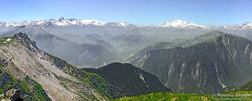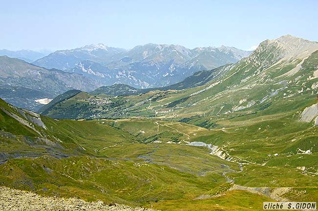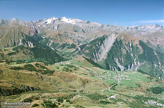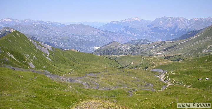 ![]() Le plateau suspendu des Albiez vu d'ensemble, du sud, depuis la Basse de Gerbier. |