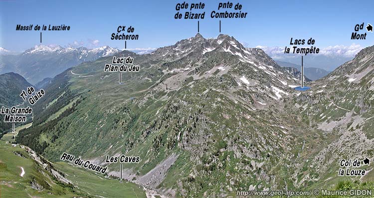 Du côté sud-oriental le chaînon de Comborsier est limité par la profonde entaille du torrent de Glaize, qui rejoint en gorges la vallée de l'Isère. La vallée de la Grande Maison, qu'il draine, a une origine structurale évidente dans sa partie haute, en amont du hameau de la Grande Maison. En effet sa branche principale, du Ruisseau du Couard, suit jusqu'au col de la Louze, la limite, jalonnée de cargneules, entre le socle cristallin et la couverture sédimentaire représentée par des termes relativement récents (Aalénien et Bajocien) : il s'agit là de la faille de La Louze (voir la page "Riondet").