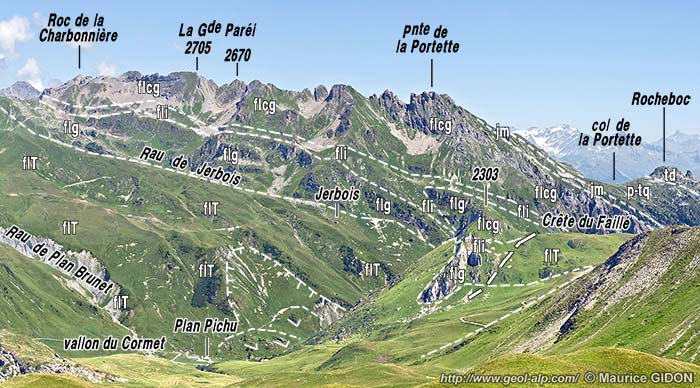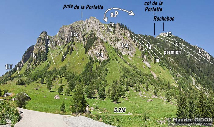 L'entaille de la vallée du Torrent du Cormet est assez profonde pour montrer que l'anticlinal de la Portette est un pli assez régulier dont le flanc ouest se déverse progressivement au delà de la verticale.