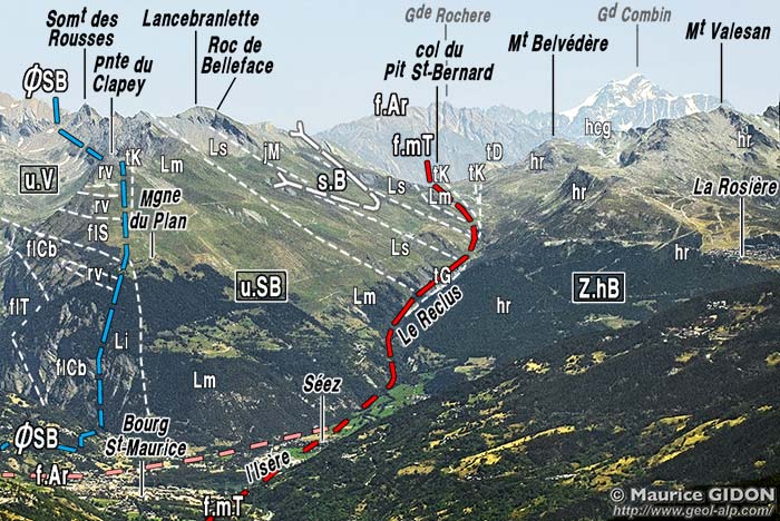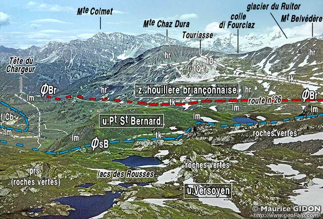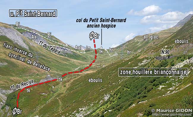 ØBr = front du houiller briançonnais (= prolongement septentrional de la faille de la moyenne Tarentaise). |