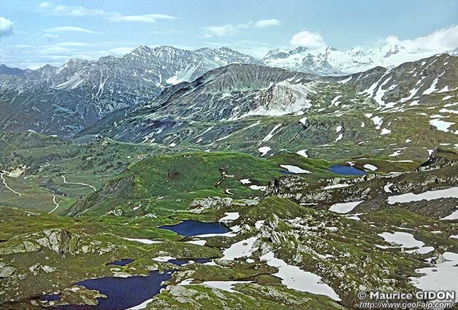 Au nord-ouest du col les pentes herbeuses qui s'élèvent, sur le versant italien, depuis le lac Verney en direction de la Punta Rossa et du Colllet des Rousses sont formées par les alternances argilo-calcaires du Lias moyen de l'unité du Petit Saint-Bernard. Mais les affleurements de ces couches ne dépassent guère l'altitude de 2300 m et font place plus haut aux roches de l'unité du Versoyen, qu'elles recouvrent par l'intermédiaire d'une lame de cargneules.