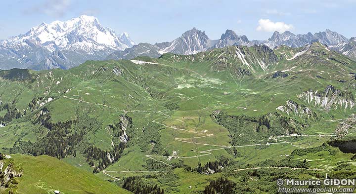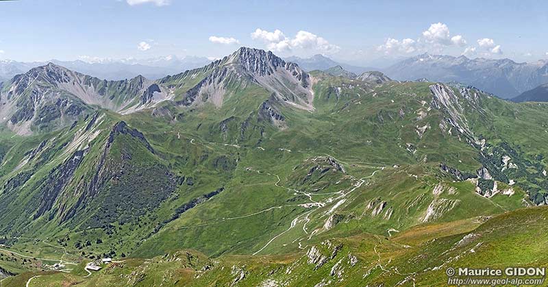 Le Cormet d'Arêches est le nom du large col qui fait communiquer le bassin du Doron, par la vallée du Pontcellamont, avec la vallée d'Isère, par celle du Torrent du Cormet (voir la page "Portette"). La ligne de partage des eaux s'y élève vers le SW en direction du Crêt du Rey et vers le NE en direction du Mont Coin (voir ci-après). Son franchissement par ces talwegs donne une coupe transversale aux unités qui s'empilent entre l'autochtone et la zone briançonnaise et tout spécialement de la nappe valaisanne ("unité de Moûtiers) à cette latitude.