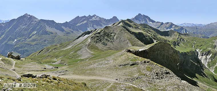 Le relief de ce versant dont les pentes s'appuient au pied des escarpements de La Terrasse et du Roignais est beaucoup moins monotone : ces pentes sont en effet drainées par deux ravins qui descendent vers le NE pour se jeter dans le Torrent des Glaciers aux abords aval du village des Chapieux (voir la page "Chapieux").