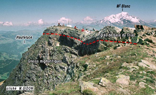 Ces lambeaux résiduels de terrains triasiques y garnissent des replats, dénivelés en escaliers par des petites failles : le plus important de ces affleurements est celui des prairies des Rognoux et le plus élevé forme un petit entablement au sommet lui-même.