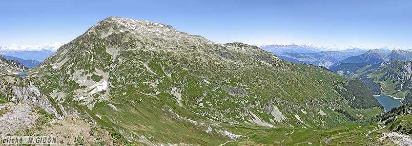 Ce sommet est le point culminant, à 2686 m, de la partie sud-occidentale du massif. Il se caractérise par sa silhouette lourde, presque tabulaire, formant une échine doucement plongeante vers le nord-est, qui ferme, vu du nord, le tableau de la vallée d'Arêches.