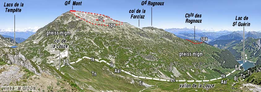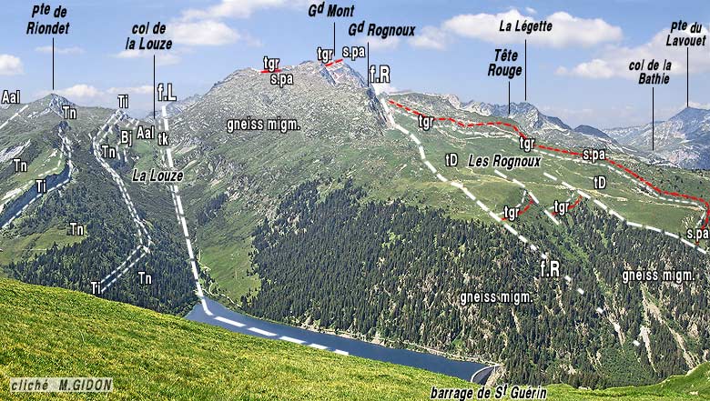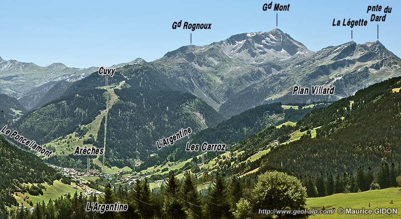 Le fait que ces mêmes accidents s'observent aussi jusqu'au pied du versant de la crête de partage des eaux qui tombe sur la vallée de la basse Tarentaise témoigne de leur grande continuité (voir la page "Comborsier").