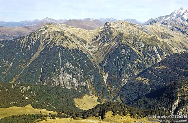 montagne du Bersend (voir le cliché de la dépression d'Arêches, plus haut dans cette page, et la coupe ci-après).