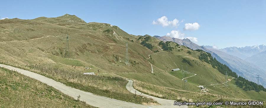 Tout le reste des alpages a pour soubassement les différents termes de la succession du flysch de Tarentaise. Bien qu'assez largement masqués par un placage d'alluvions glaciaires anciennes ils affleurent suffisamment pour se montrer replissés par des plis qui sont assez ouverts et seulement déjetés vers l'ouest.