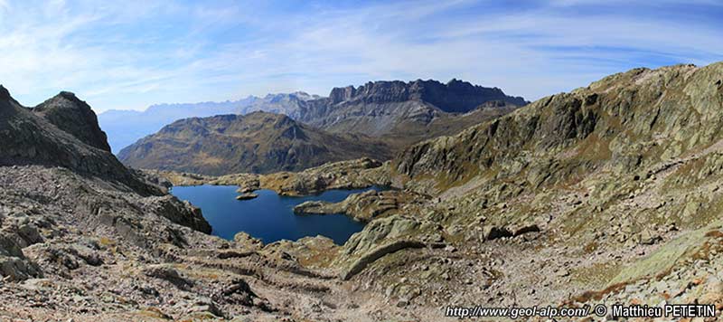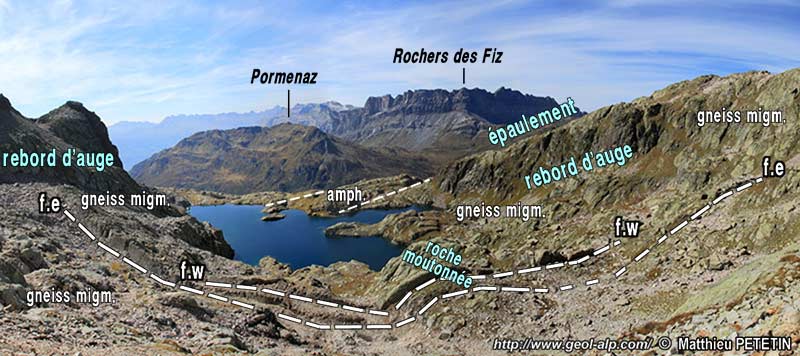 Le site du Lac Cornu en est un excellent exemple, le lac occupant une cuvette de surcreusement glaciaire affectant un fond d'auge qui avait été creusé par un ancien glacier de cirque qui descendait au flanc ouest de l'Aiguille Pourrie. Le verrou qui retient le lac est armé par une bande d'amphibolites, incluse verticalement dans les gneiss migmatisés, qui affleure notamment en formant l'échine, orientée N-S, qui borde à l'ouest le diverticule septentrional du lac.