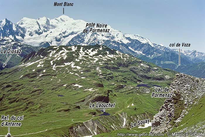 A/ La montagne de Pormenaz constitue le promontoire nord-occidental du massif des Aiguilles Rouges, qui est ainsi isolé par le cours de La Diosaz de la partie plus orientale du massif (chaînon du Brévent).