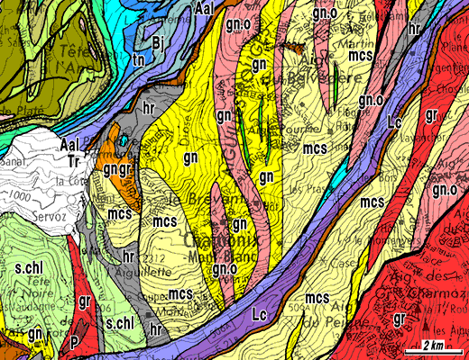 La succession subalpine, beaucoup plus épaisse, du Buet et de Platé, qui recouvre cette série autochtone ultra réduite constitue sans ambiguité le prolongement méridional de la nappe de Morcles (la continuité étant évidente depuis la rive droite de la vallée du Rhône, où est définie cette dernière). Toutefois elle ne possède plus la structure en vaste pli couché qui la caractérise en Suisse dans la coupe de la vallée du Rhône. Ici, au contraire, elle est séparée de son autochtone par l'intermédiaire d'une surface de chevauchement. |