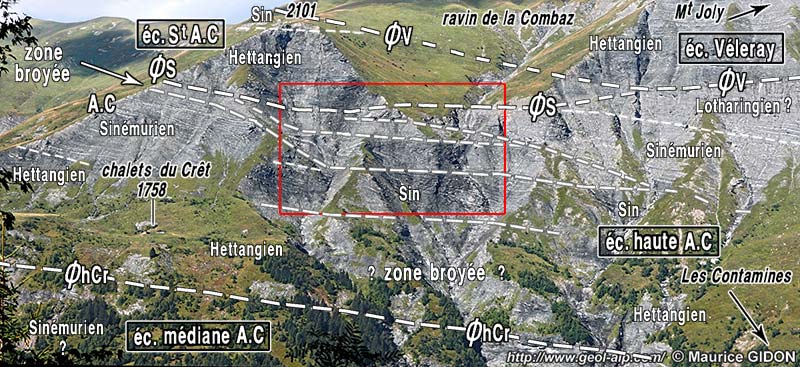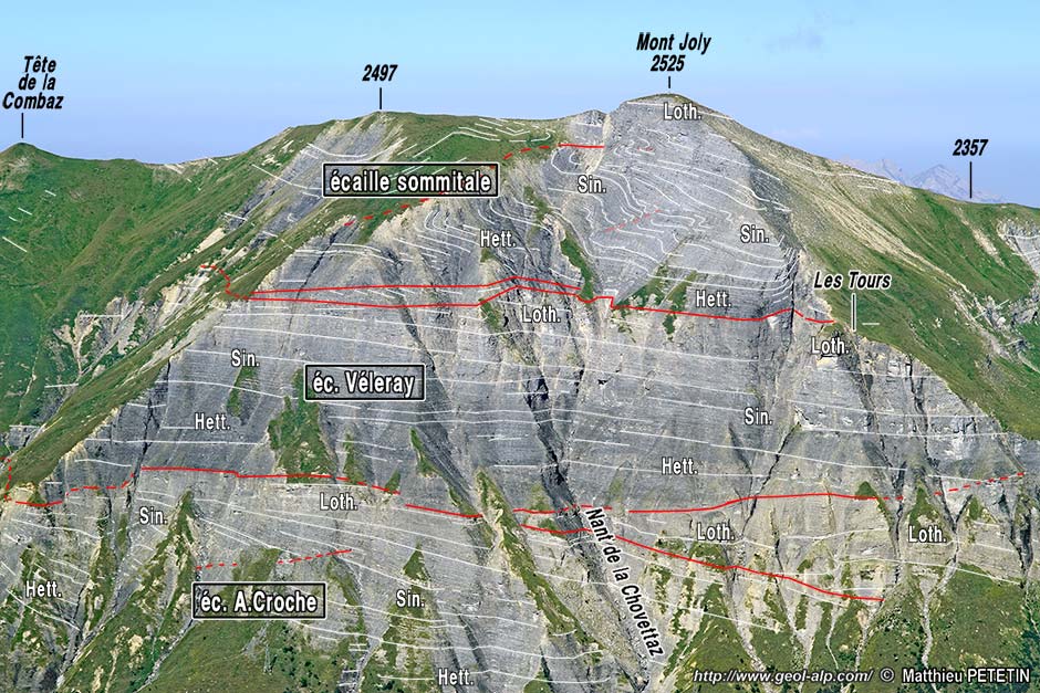 B/ Analyse tectonique par "suivi des couches" dans les escarpements orientaux du Mont Joly :