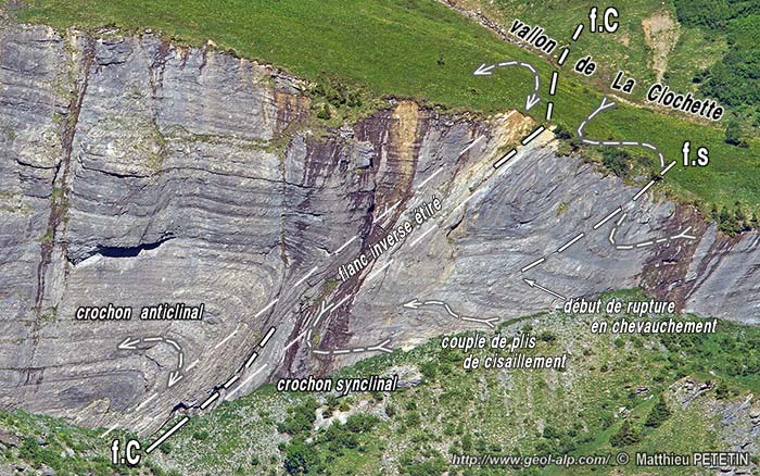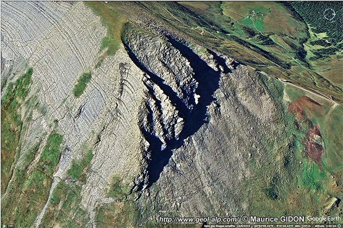 Cet accident est un exemple supplémentaire montrant que les torsions de couches du Mont Joly ne correspondent pas à des charnières de plis couchés "isoclinaux" (à flancs parallèles).