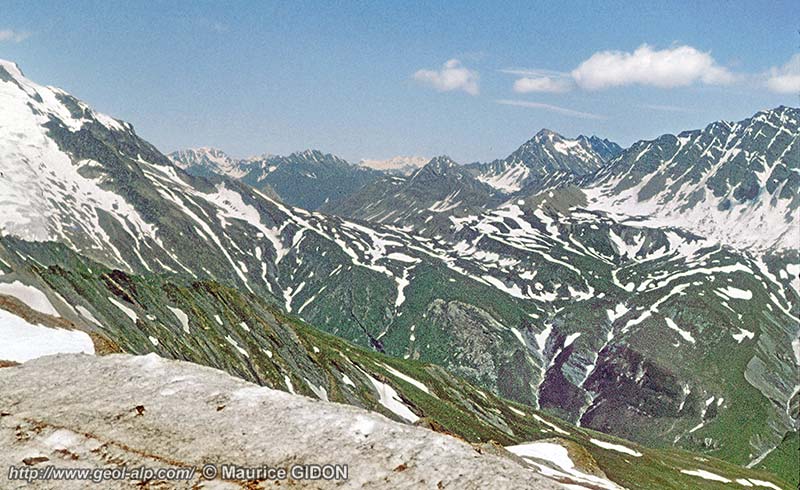 la Seigne vus du sud, depuis le sommet du col (cliché original obligeamment communiqué par M. Pierre Gidon).