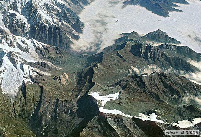vus d'avion, du sud-ouest, depuis l'aplomb des Chapieux.