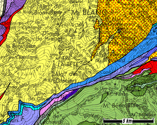 Carte géologique simplifiée de l'extrémité sud du massif du Mont-Blanc