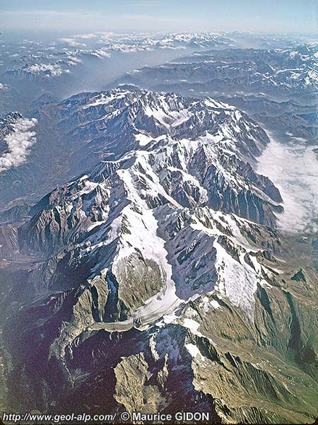 du Mont-Blanc s'ennoie clairement sous des terrains sédimentaires