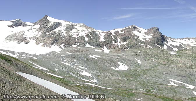 (3464 m) et, plus au sud, du Pic Bayle ( 3465