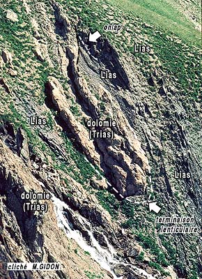 de la couverture par rapport au socle cristallin (les symboles de charnières, en marge droite du cliché,