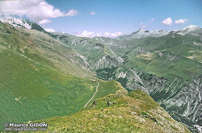 du Fond du Ferrand, de la Valette et des Prés Nouveaux) jusqu'au sud (abords du barrage du Chambon), le tracé du fond de l'hémigraben du Ferrand, qui borde du côté oriental le bloc des Rousses.