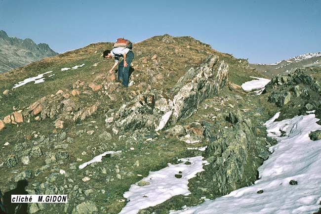 Dans les pentes orientales du col du Sabot le sentier menant au vallon de la Cochette traverse la voûte de l'anticlinal du Sabot : on y traverse les grès, dolomies et cargneules triasiques qui y reposent sur la surface du socle cristallin. Celle-ci est dégagée en plusieurs endroits, montrant très clairement le repos discordant de ces terrains du début du cycle sédimentaire alpin sur les roches métamorphisées au cours du cycle hercynien.