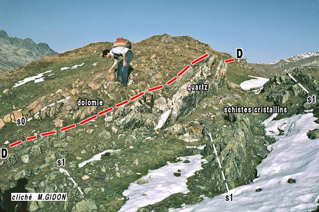 résulte d'un cisaillement vers l'ouest des parties hautes de la couverture qui est une conséquence du jeu en chevauchement de la faille du Lac Blanc, à