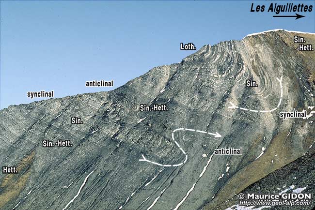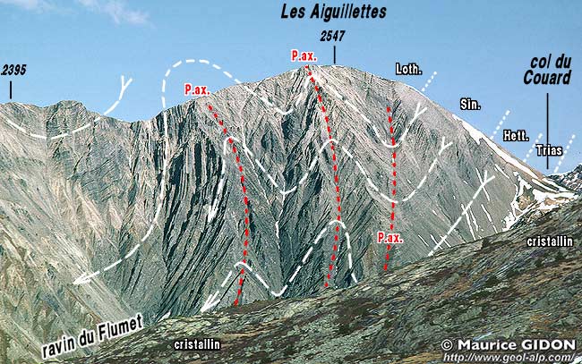 Les conditions d'observation de ces plis sont par contre beaucoup plus favorables dans les abrupts ravinés du versant est de cette montagne, en rive nord du ravin du Flumet (au nord-est de Vaujany).