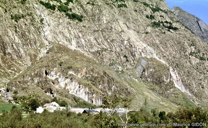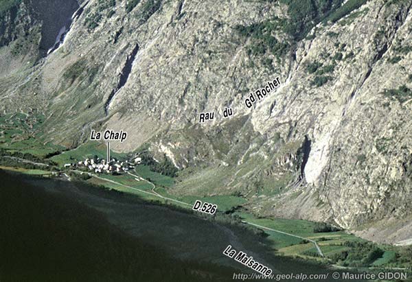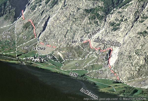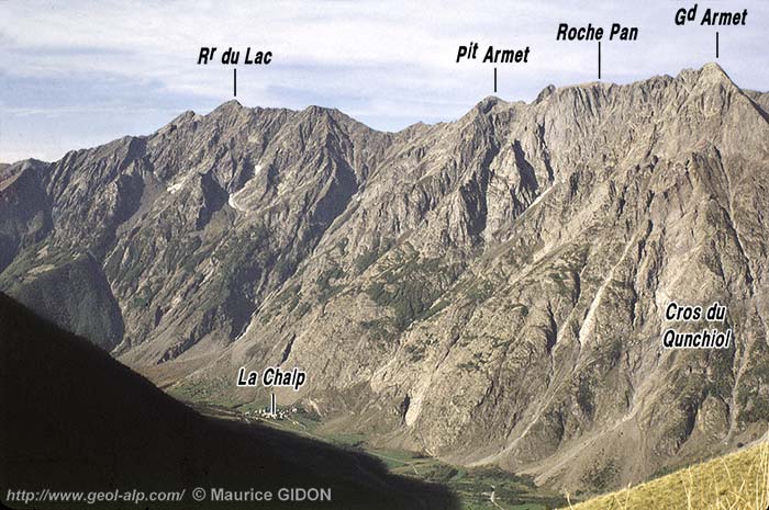 À la hauteur du village de la Chalp de Chantelouve la vallée de la Malsanne s'inscrit assez précisément à la marge occidentale de l'hémigraben d'Ornon et le pied des escarpements de son versant occidental suit sensiblement le tracé de la grande faille du col d'Ornon. À cette latitude la partie inférieure des puissants abrupts du chaînon de l'Armet correspond au miroir de faille de cette cassure : en plusieurs points, entre les secteurs où sa surface a été corrodée ou entaillé par de profondes ravines, l'érosion l'a dénudé en dalles structurales de près de 100 m de haut.