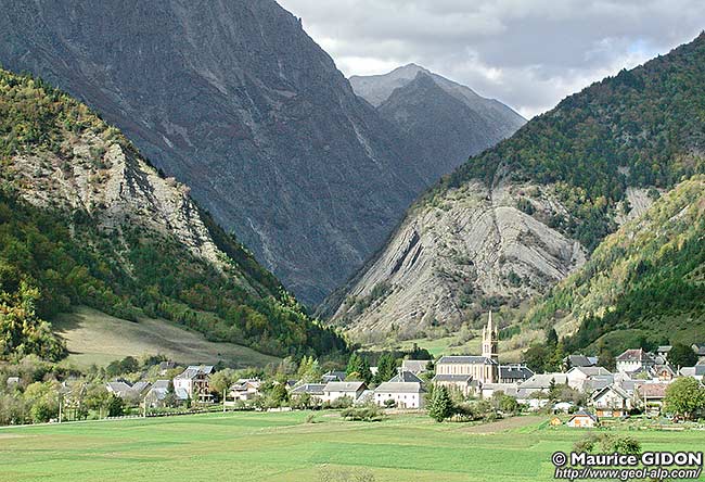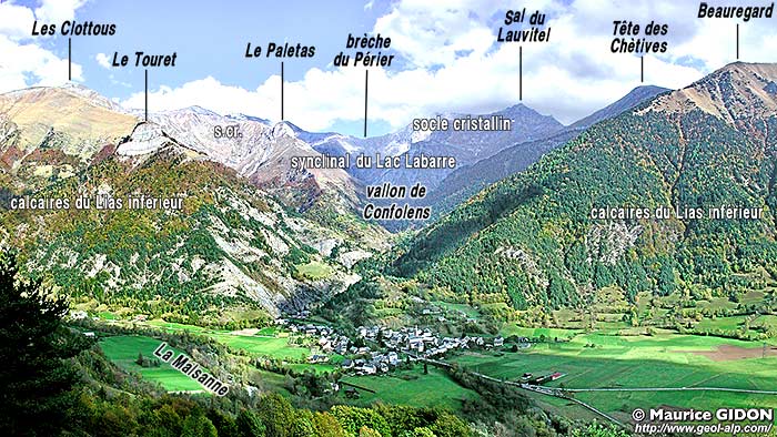 En aval du village du Périer la vallée de la Malsanne s'ouvre en une plaine alluviale comblée par les déjections torrentielles. Il s'agit là d'une zone de surcreusement* glaciaire, ouverte dans les couches inférieures de la succession sédimentaire et dont la localisation est visiblement liée à la présence, à son extrémité aval, du verrou constitué par les rochers du défilé de la Barrière, formés par le socle cristallin, et peut-être aussi à la conflence du glacier qui descendait le vallon de Confolens.