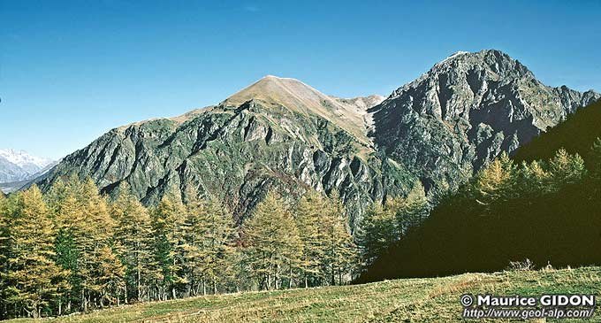 Du côté septentrional son matériel cristallin surplombe de plus de 500 m le sédimentaire de la Tête du Vet et, plus au nord-est, des pentes qui descendent vers le Périer, par le jeu d'une cassure majeure, à tracé presque E-W, la faille du Vet.