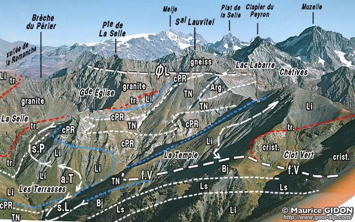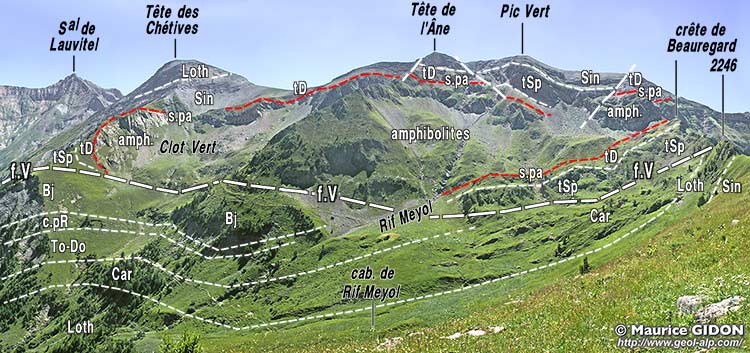 Ainsi le compartiment intercalaire, qui porte le sommet de la Tête des Chétives, se serait avancé vers le NE, par le jeu conjugué du chevauchement des Chétives et de la faille du Vet, en formant un poinçon saillant qui percutait orthogonalement le synclinal du lac Labarre.
