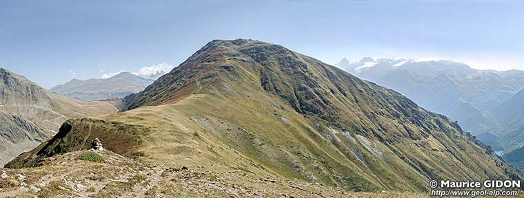 La crête est-ouest qui sépare la gorge de la Romanche, au sud, de celle de la Sarenne, au nord, est constituée par un alignement de trois sommets mamelonnés. Les cols qui les séparent correspondent au passage des accidents N-S qui affectent le socle cristallin du massif occidental des Grandes Rousses.