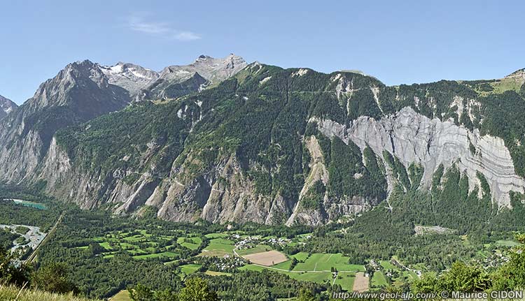 Ces escarpements, et les pentes plus douces qu'ils supportent, sont tranchés, au sud de Villard-Notre-Dame, par la vallée du ruisseau du Vallon, affluent qui descend du Rochail. L'entaille de la partie aval de cette vallée, dénommée "La Gorge", attire l'attention par ses deux flancs presque verticaux qui lui donnent un profil transversal en U (typique d'un creusement glaciaire). Son fond est suspendu au dessus de la vallée du Vénéon qu'elle rejoint orthogonalement à l'extrémité sud de la plaine de Bourg-d'Oisans et le ruisseau qui l'emprunte rejoint cette dernière par une typique gorge de raccordement.