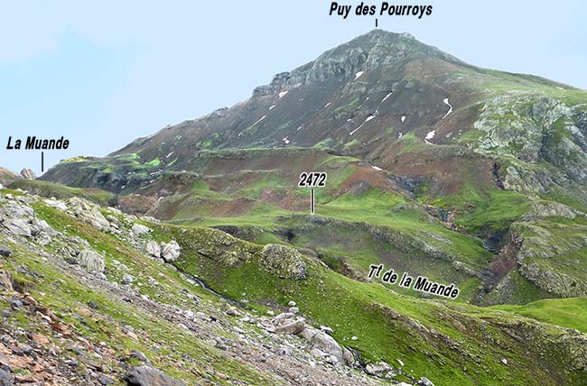 Le versant occidental du Puy des Pourroys, vus de l'ouest depuis les abords nord du Lac des Selliers (cliché original obligeamment communiqué par Mr. R. Papet.