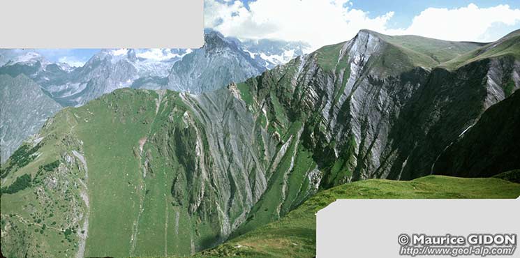 aval du Vallon Long, au creux duquel la barre du Lias calcaire