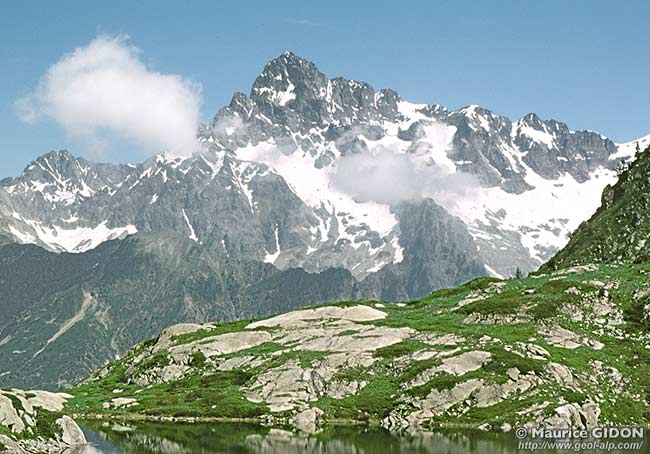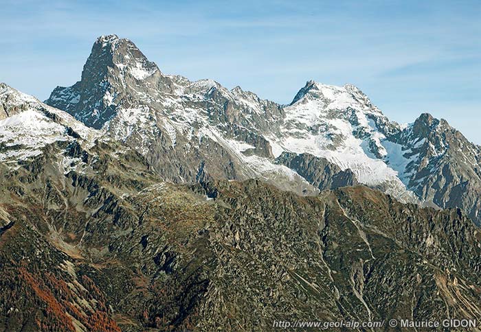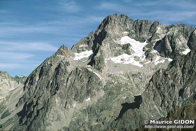 Du côté nord-est, d'autre part, il domine de 1500 m le fond du vallon de la Lavey, par l'intermédiaire des replats glaciaires de glaciers des Sellettes.