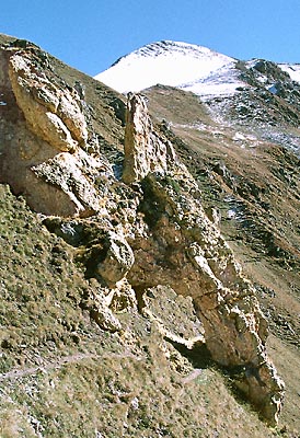 Arche naturelle, dans les cargneules triasiques, à l'est du Lac de la MuzelleCette arche s'est ouverte par l'effritement d'une partie moins