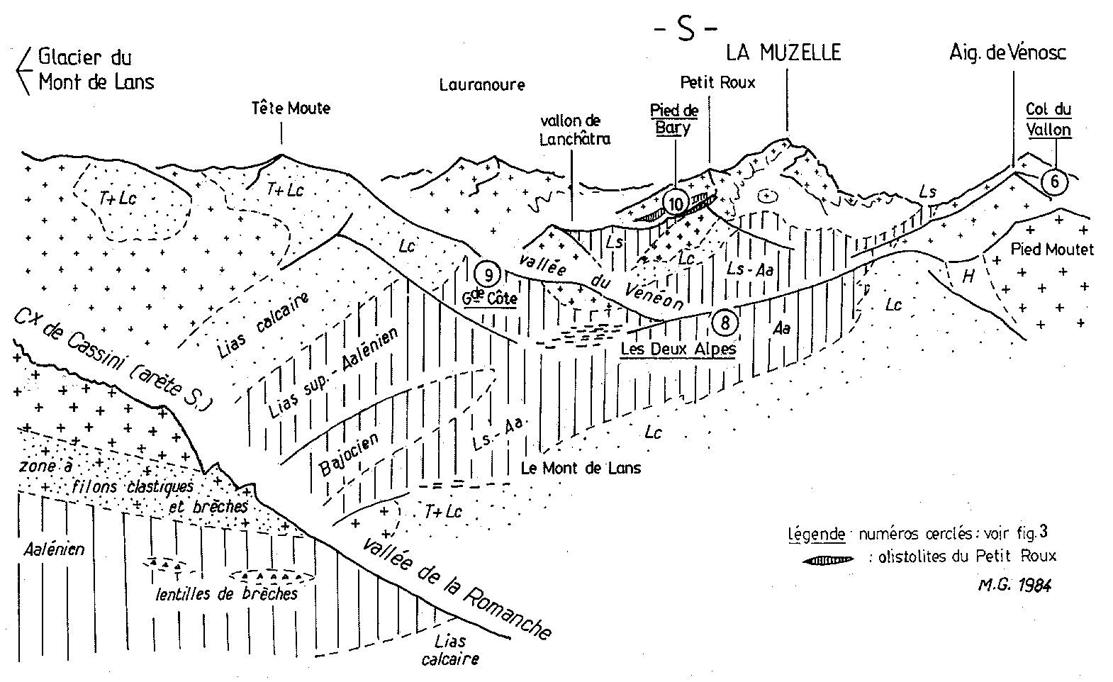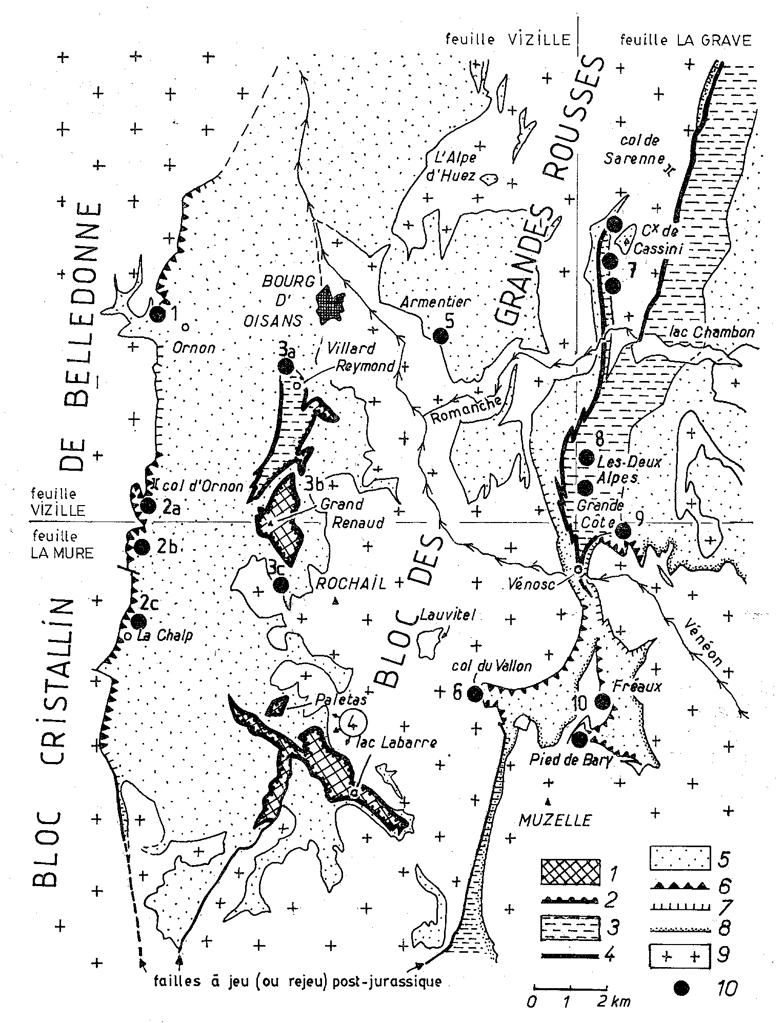Au sein de l'hémigraben de Bourg-d'Oisans, comme de tous les autres de la transversale de la Romanche, l'épaisseur des sédiments jurassiques croît