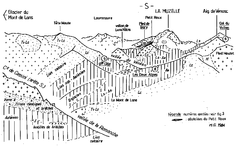 Colonne stratigraphique des environs de Bourg-d'Oisans Noter l'épaisseur totale de la succession jurassique