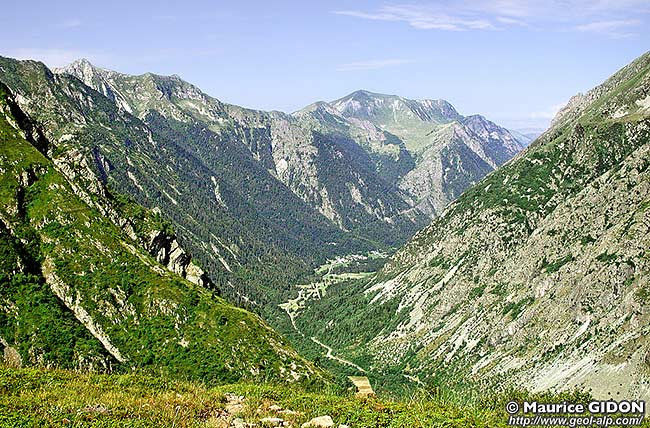 En aval du village de Valsenestre la structure de cette vallée reste assez simple, car la surface du socle cristallin y est à peu près tabulaire et culmine sur les deux rives autour de l'altitude de 2000 à 2200 m. La couverture sédimentaire se développe assez largement sur les crêtes de rive droite, entre l'Arcanier et le sommet des Chétives, de façon plus restreinte et plus discontinue en rive gauche, de part et d'autre de l'arête ouest du Pic de Valsenestre.