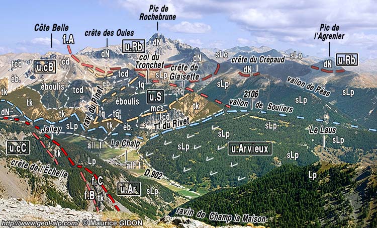 Cette interprétation est généralement admise, en dépit du fait que l'examen du pourtour de cette unité ne montrent guère que son repos sur le matériel briançonnais soit une évidence :