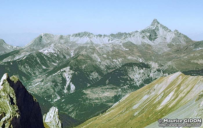Vu du sud, sa crête occidentale se détache très nettement au dessus des pentes plutôt molles de rive droite du Guil. Cette caractéristique est due au contraste de résistance à l'érosion entre ses crêtes calcaréo-dolomitiques (formées surtout de dolomies noriennes) et son soubassement de calcschistes ("schistes lustrés", d'origine piémontaise et /ou ligure).