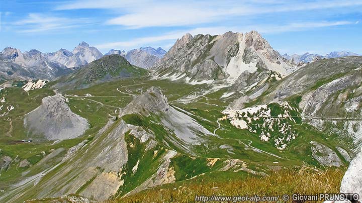 Par ailleurs le Colle del Mulo marque un changement radical du relief de cette crête, du fait que le chaînon calcaire acéré de la Meja (voir les pages "Meja" et "Margherina") s'y termine au Becco Grande et y fait place, à partir de la Cima di Test en direction de l'est, à de lourdes échines calcaires à relief karstique.