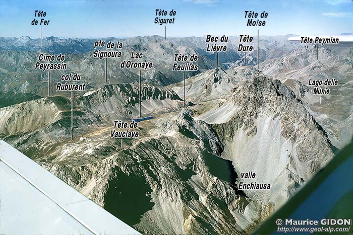 Les crêtes des sources de l'Unerzio, vues de l'est depuis le Passo della Gardetta (extrait de la publication n° 024, M.GIDON 1962, graphisme très légèrement corrigé)